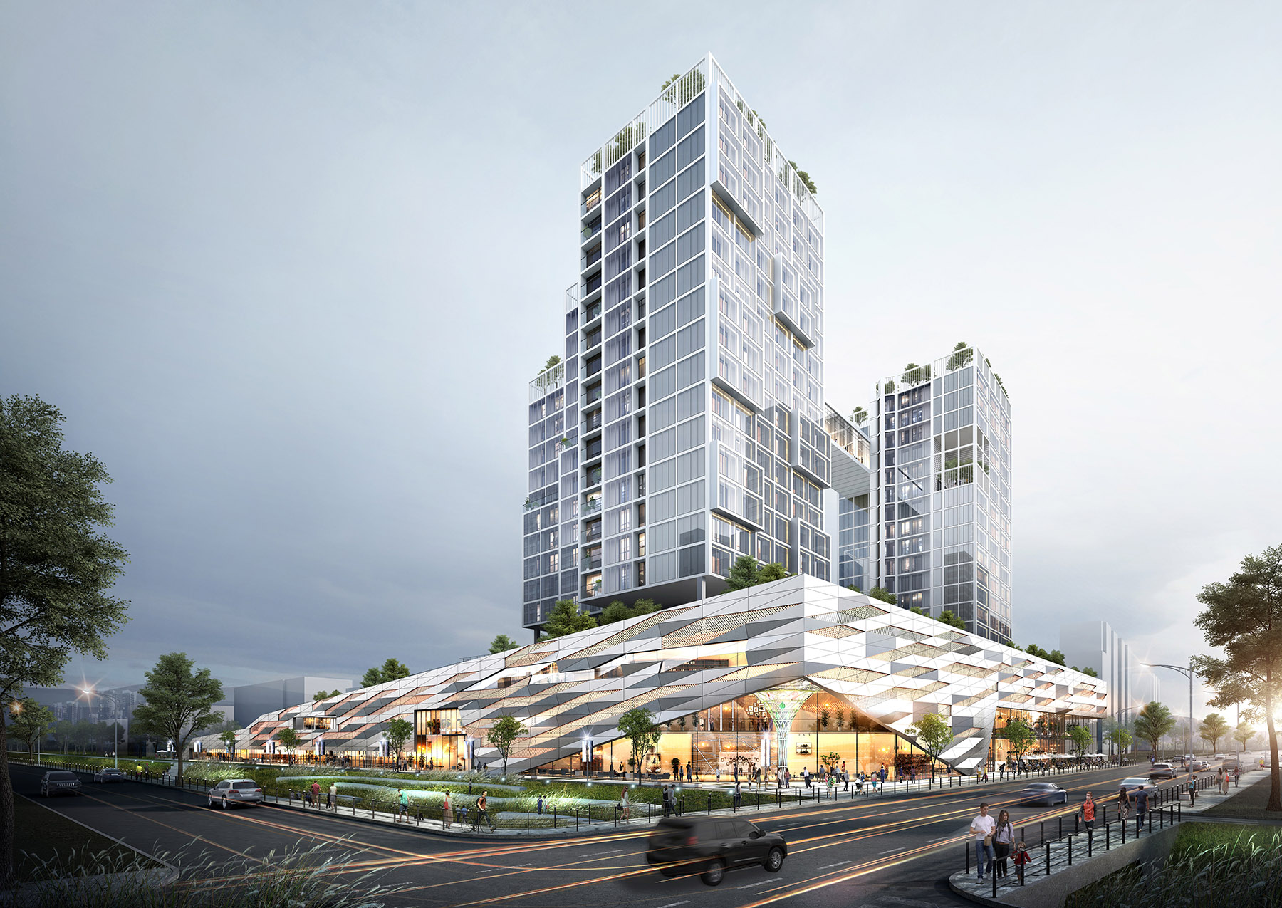 복원되는 굴포천 수변축과 연계한 복합개발사업으로 저층부는 푸드플랫폼, 공공임대상가, 수변몰 등을 포함한 지역 활성화 시설들이 위치하고
