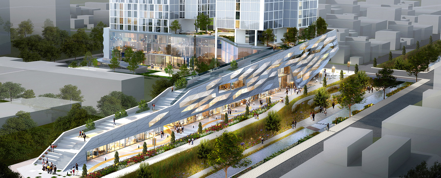 도시와 자연의 자연스러운 유입을 이끌어내고 차별화된 디자인을 통해 지역의 랜드마크가 될 수 있도록 계획하였다.